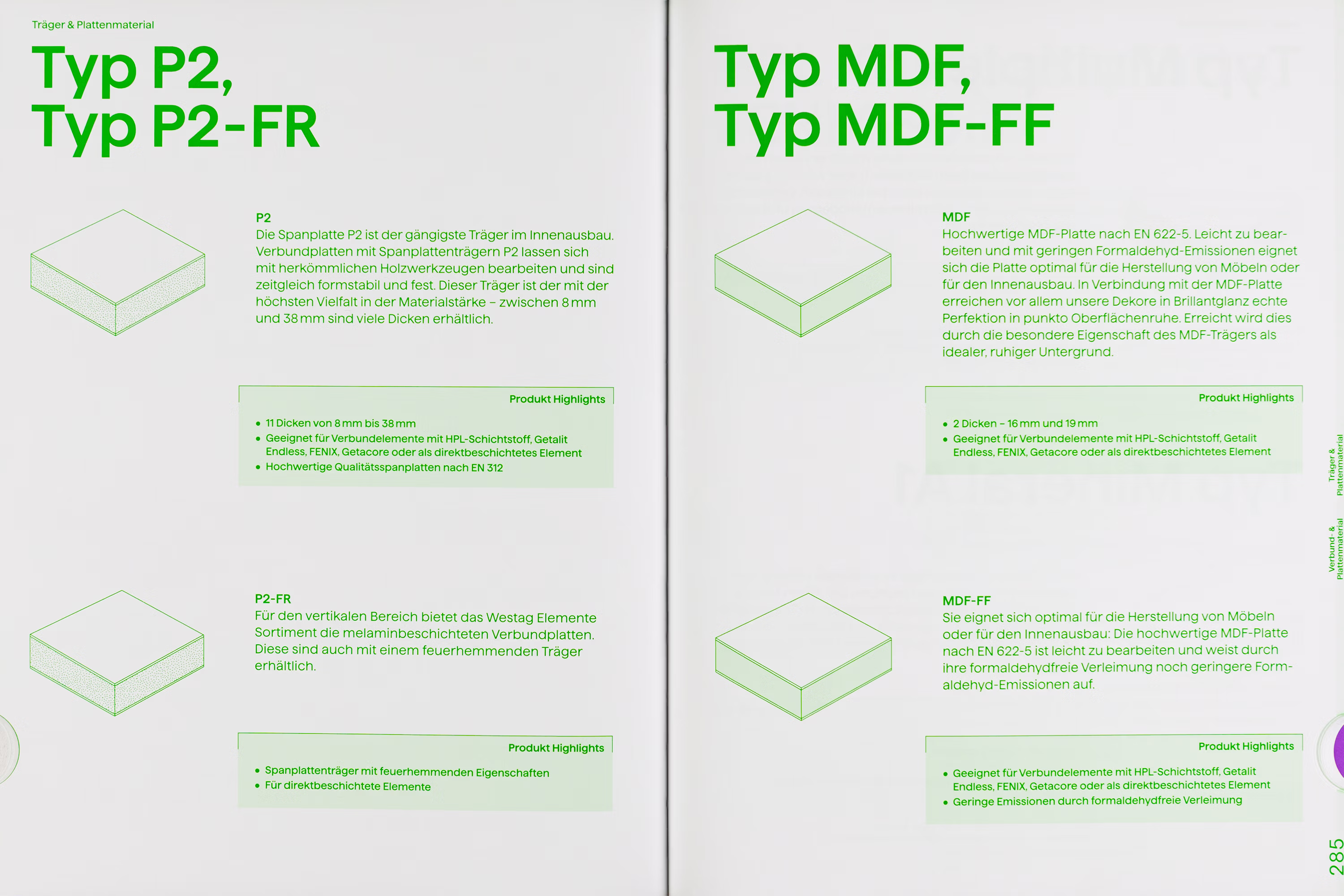 Der Sortimentskatalog von Westag Elemente bündelt erstmals die drei Bereiche [1] Arbeitsplatten, [2] Verbund- und Plattenmaterial sowie [3] Fensterbänke in einem 400 Seiten umfassenden Gesamtwerk. Der Katalog übersetzt die Komplexität der modularen Produktpalette in ein klares, intuitives Ordnungssystem. Als funktionales Tool konzipiert, unterstützt er bei der Projektplanung und dient gleichermaßen als Inspirationsquelle und Ideengeber.